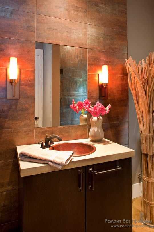 Еще один нестандартный и незаслуженно забытый вариант — мозаика. Это трудоемкий и очень дорогой вид отделки стен. В качестве элементов мозаики часто используется не только керамическая плитка, но и зеркала, металл, пластик и т.д.