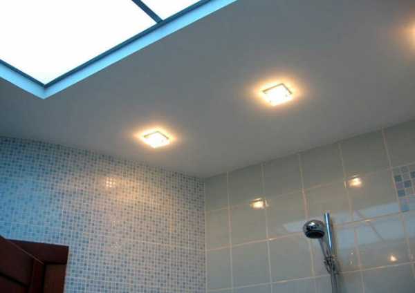 - Таким образом, потолок в ванной готов и теперь можно монтировать светильники.