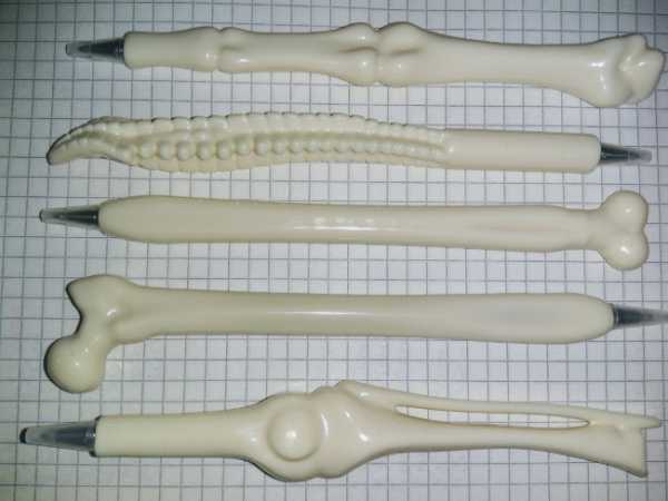 Вот такие декоративные прикольные ручки в виде костей, как на фотографии ниже, будут прекрасным маленьким подарком студенту-медику, например.
