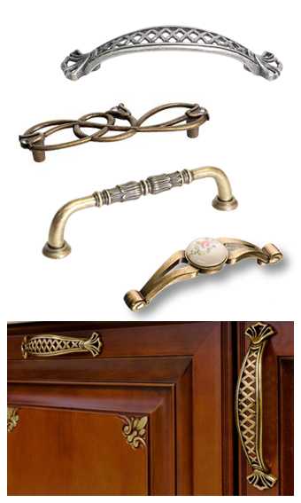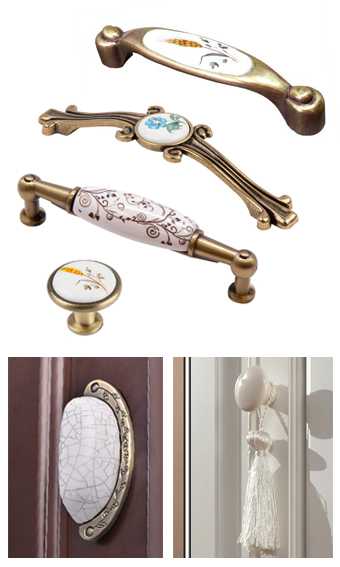 Для деревенских стилей Европы, типа «Прованс» характерно использование медных ручек с фарфоровыми вставками