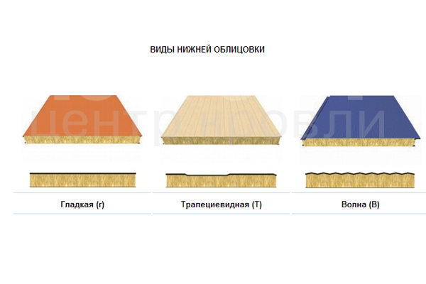 Профиль облицовки может быть разным с внутренней и наружней стороны панели. Гладкий профиль не рекомендуется для сэндвич панелей с большой длиной, т.к. при монтаже легко повредить такую поверхность панели.