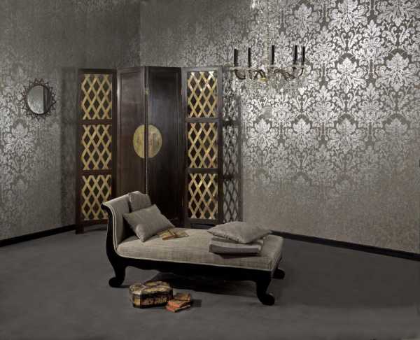 - Шелкография. Изготавливают такие обои путем нанесения на бумажный слой винила в сочетании с шелковыми нитями. Создается потрясающий эффект, напоминающий шелковую ткань. Поверхность обоев может быть гладкой или рельефной. Эти покрытия представляют самый широкий класс виниловых обоев, которые отличаются разнообразием дизайна и высокой степенью блеска.