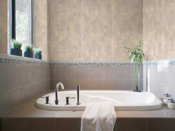 - Для ванной комнаты следует отдать предпочтение обоям из гладкого винила, которому вполне под силу заменить керамическую плитку.