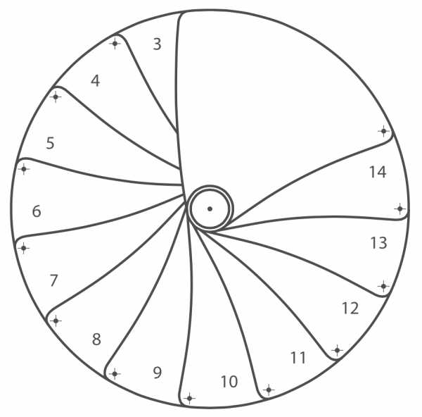 - Поскольку ступени винтовой конструкции имеют трапециевидную форму, то и рассчитывать их будем в три этапа. Сначала просчитаем глубину проступей в середине лестничной конструкции по пути движения. Для этого нам и пригодится рассчитанная в п.1 протяженность окружности по развертке конструкции. Разделим 4605 на 14 (пятнадцатая ступень считается площадкой) и получим 329 мм. Это немного превышает принятые стандарты для внутридомовых лестниц, поэтому следует увеличить количество ступеней до 17, таким образом, чтобы количество подъемов составило 18. В этом случае получим проступь глубиной 4605:17=271 мм и высотой 3000:18=167 мм. Такие параметры попадают в эргономические рекомендации, основанные на ширине человеческого шага.