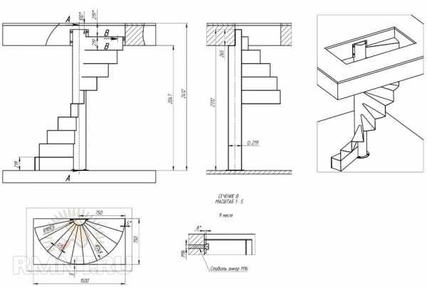 При конструировании винтовой лестницы очень важно тщательным образом рассчитать все ее размеры и параметры, чтобы в будущем ваша лестница была надежной и безопасной в использовании.