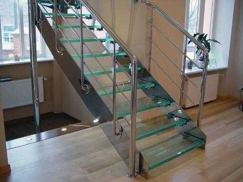 Можно сделать точечную подсветку для каждой ступени – это смотрится очень интересно и отлично освещает конструкцию