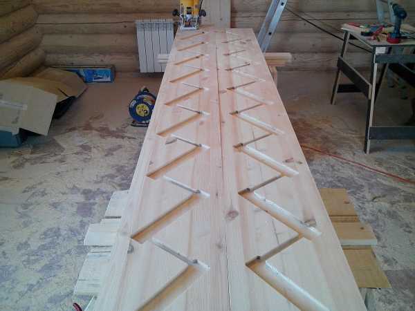 После установки всех подступеней начните монтировать проступи. Для их изготовления распилите балку на участки, равные количеству ступеней без одной штуки. Все детали обработайте фрезеровальным станком. Установите их на поверхность, фиксируя с помощью саморезов.