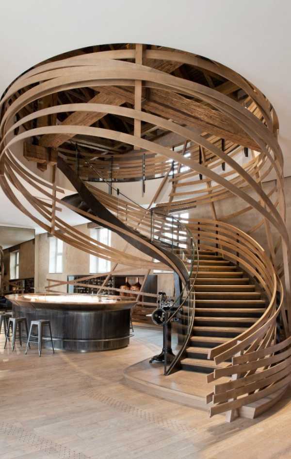 Необычная винтовая лестница из дерева