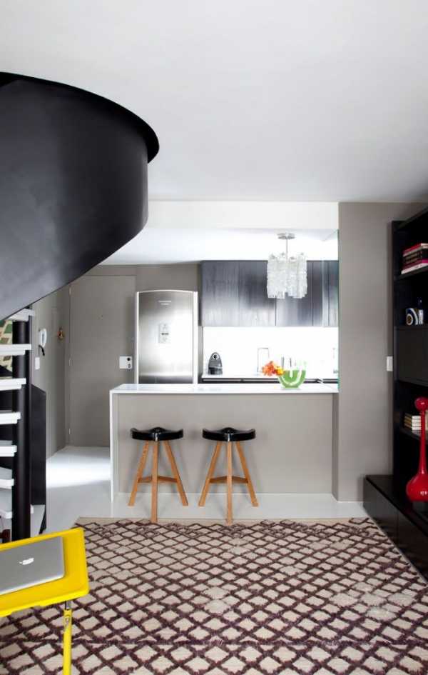 В отличие от маршевых лестниц, винтовые достаточно компакты и размещаются на меньшем пространстве. И только этот факт толкает многих архитекторов включить в проект данный конструктивный элемент. Посудите сами, винтовая лестница занимает не более 2м² жилого пространства и может быть размещена как возле стены, так и в центре комнаты, поэтому она с легкостью вписывается даже в самые скромные по габаритам помещения. Взять, к примеру, двухуровневую квартиру – шикарную маршевую лестницу здесь вряд ли получится разместить, а вот красиво обыграть изящную винтовую получится запросто.
