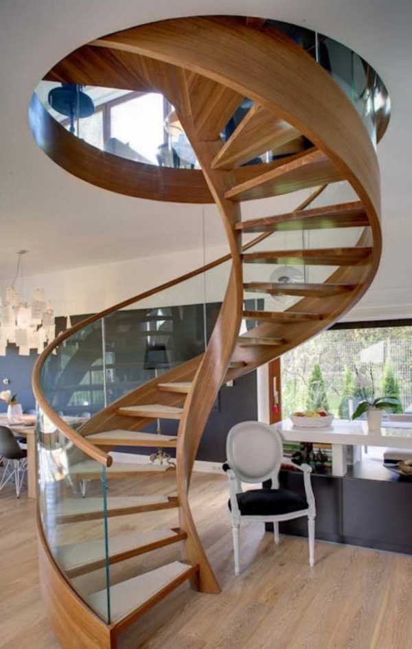 Винтовые лестницы из дерева и стекла