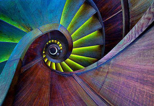 Яркая винтовая лестница в современном стиле