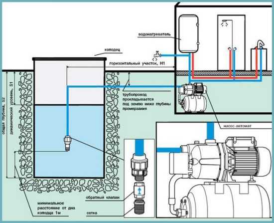 - Напор. Для расчета сложите глубину всасывания и высоту трубопровода, который будет подавать воду непосредственно в краны.