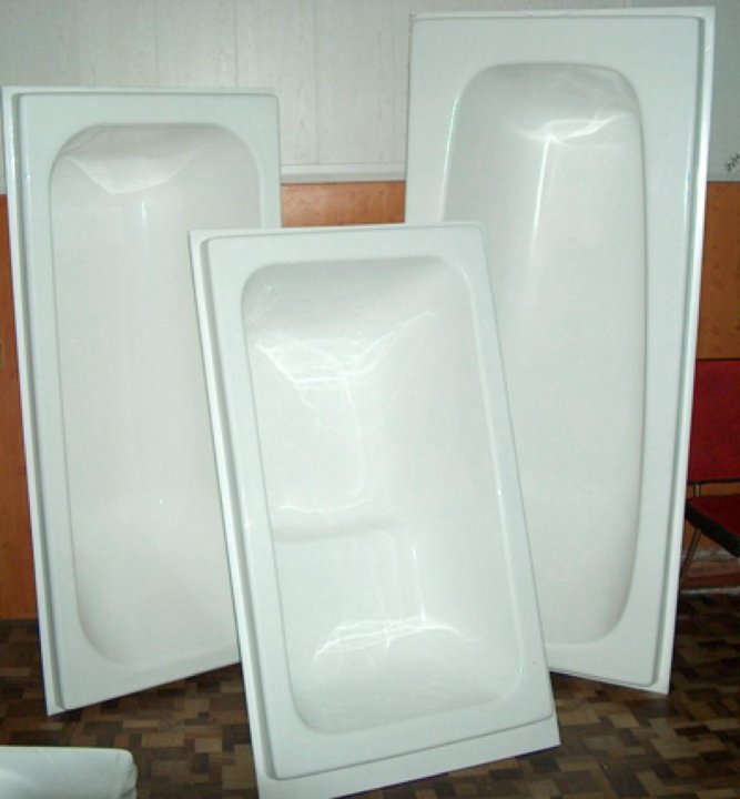 Есть две технологии производства акриловых вкладышей в ванну. Первая технология — формование из разогретого листа сантехнического акрила в специальной пресс-форме. Эти вкладыши называют литыми. Вторая технология — композитные (комбинированные) вкладыши. Основу делают из АБС пластика, после чего внутренняя поверхность покрывается тонким слоем акрила.