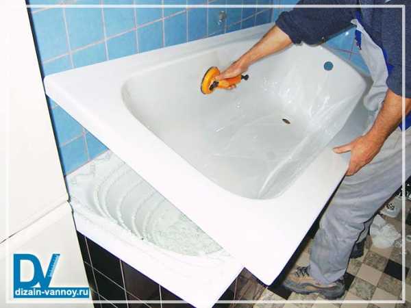 - После этого готовую акриловую накладку устанавливают в ванну на клеящий состав;