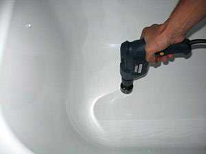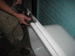 Перед тем как произвести ремонт чугунных ванн жидким акрилом, нужно сделать зачистку поверхности сантехники: