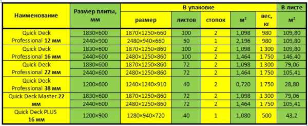 Для тех, кто намеревается приобрести ДСП QuickDeck, полезно будет узнать не только цену этих изделий, но и их основные габаритные параметры. Всю эту информацию мы свели для вас в единую таблицу: