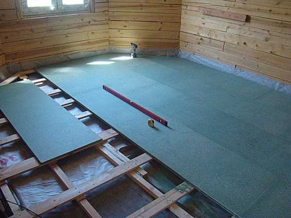 Это был подготовительный этап. Дальше укладывают плиты ДСП. Пол настилают так, чтобы короткая сторона плиты лежала параллельно лагам, если работа делается от стены, которая находится напротив двери.