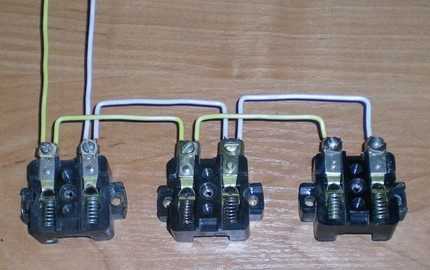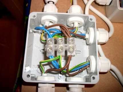 Все жилы проводника: синяя для нулевого «нулевого», красно-коричневая для «фазного» и желто-зеленая для «заземления» – подключаются параллельно