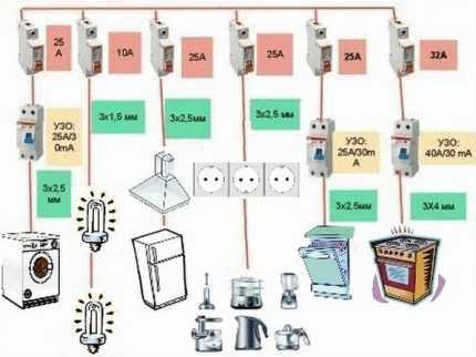 Кухня — помещение, в котором используются электроприборы, подключаемые как к отдельным, так и к общим силовым линиям