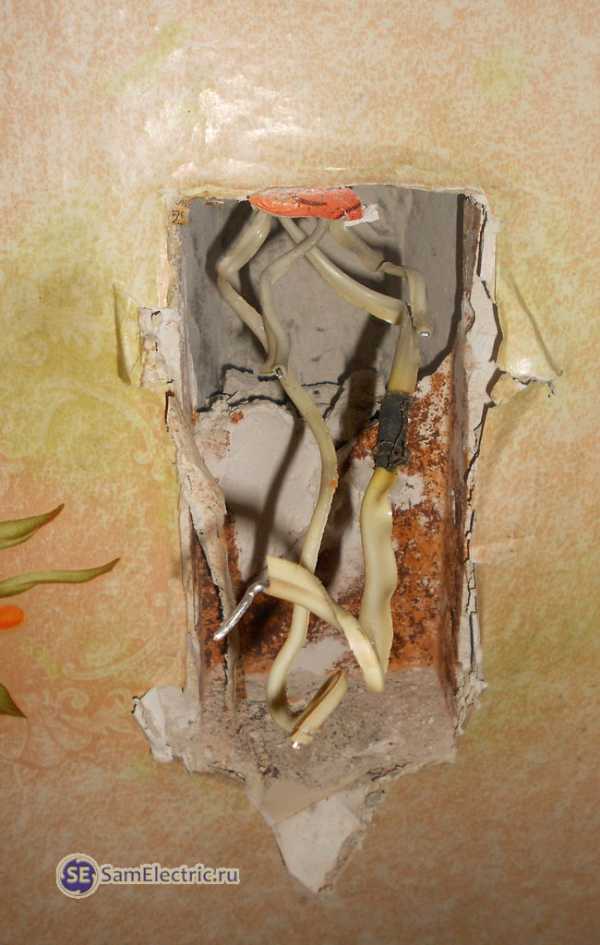 Когда делался монтаж коробок и прокладка провода для бра, в коробке выключателя была оставлена петля неразделанного провода. Теперь пришло время подготовки его к монтажу.