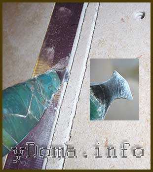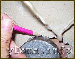 Далее приложив линейку с помощью самодельного резака (таким резаком хорошо режется также органическое стекло и пластмасса), сделанного из поломанной пилки по металлу, прорезать канавки. Штроба в гипсокартоне, как и в штукатурке прорезаются легко.