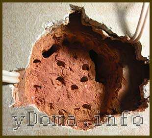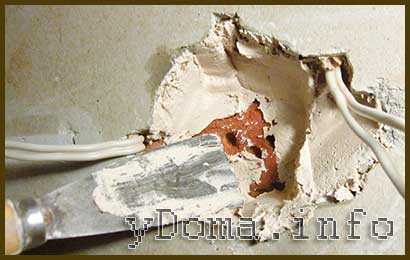 С небольшим нажимом отверткой с плоским лезвием удаляется гипсокартон или штукатурка из штробы. Теперь можно укладывать проводку в штробу.