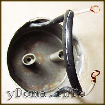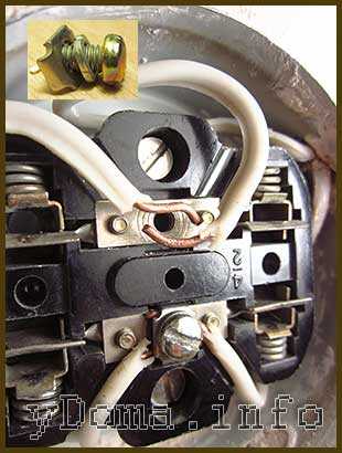 Далее провод, который подключен к фазному выводу розетки разрезается посередине, с концов снимается изоляция и формируются колечки. Неразрезанный провод возвращается в изоляционную трубку.