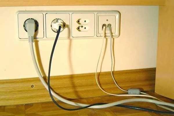 Пример грубого нарушения правил эксплуатации силовых разъемов: сумма мощностей подключаемых приборов не должна превышать мощности отдельной розетки