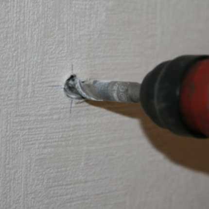 Сверлим стену под дюбели точно в намеченных местах. Диаметр и длина отверстия должны соответствовать выбранному крепежу