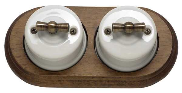 Накладные выключатели применяются при устройстве открытой проводки. Модели в стиле ретро отлично сочетаются с интерьерами загородных домов