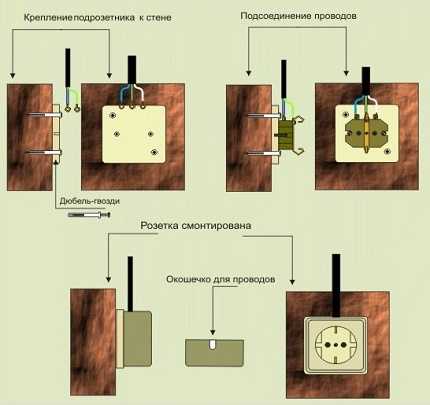 Видео #2. Процесс установки и подключения розетки открытой проводки: