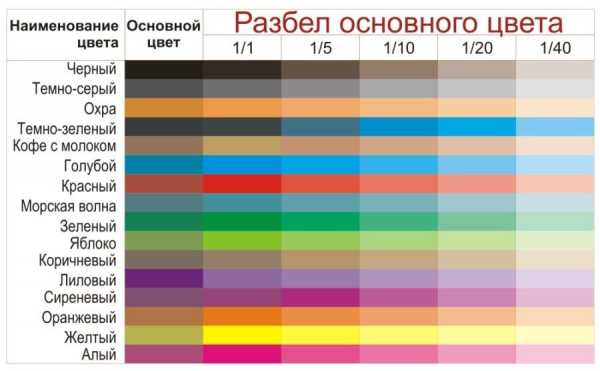 Другой способ – разбавление (разбел) насыщенного заводского цвета белым наполнителем. Если опыт в этом деле еще небольшой, можно пользоваться специальными таблицами, разработанными для дизайнеров: