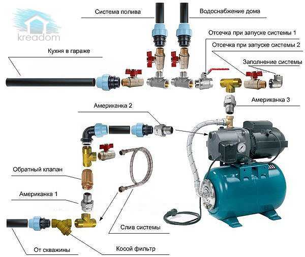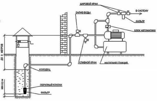 Схема устройства дачного водопровода из колодца