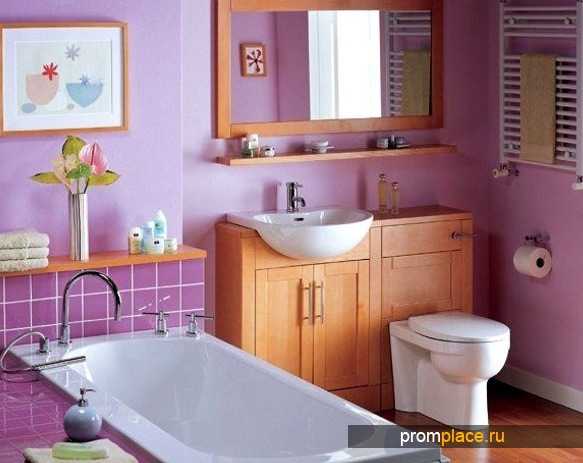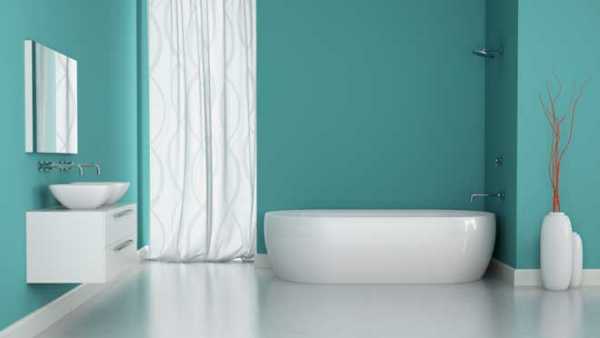 В помещениях с повышенной влажностью, а в частности, для ванных комнат, применяется водостойкая краска для внутренних работ, которая не только служит декорацией, но может в какой-то степени заменить даже керамическую плитку. Конечно, по изоляционной мощности такое покрытие проиграет кафелю, зато на несколько порядков изменится стоимость отделки, к тому же вы сможете менять цвет комнаты хоть каждый год, не особо вкладываясь на приобретение материалов.
