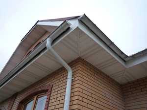 если смонтировать желоб вплотную к стене, то на поверхности образуется плесень из-за мокрой поверхности, софиты для вентиляции крыши перекрывать нельзя;- вертикальные трубы крепят через 2 метра, если на стену постоянно дует ветер, расстояние пересматривается до одного метра;