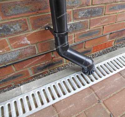 Рядом с водосточкой роют траншеи, делая их под наклоном, чтобы был естественный сток воды. Глубину и ширину канавы рассчитывают таким образом, чтобы можно было уложить и засыпать пластиковую трубу.