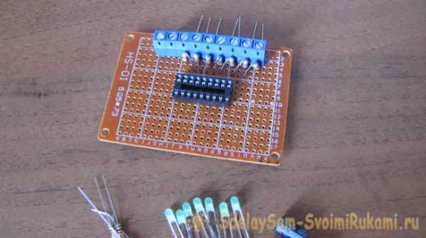 Для микросхемы лучше всего применить разъём для беспаечного размещения. Это гнездо можно паять и не бояться, что перегреешь ножки, или подействует статическое электричество. Если микросхема вышла из строя, по каким – то причинам, то заменить её можно за пару секунд. Стоит такая панелька копейки.