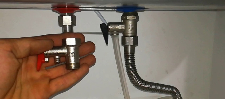 — Предохранительный клапан выполняет функцию обратного клапана, не позволяя воде вытечь из накопительного нагревателя, а так же стравливает лишнее давление.