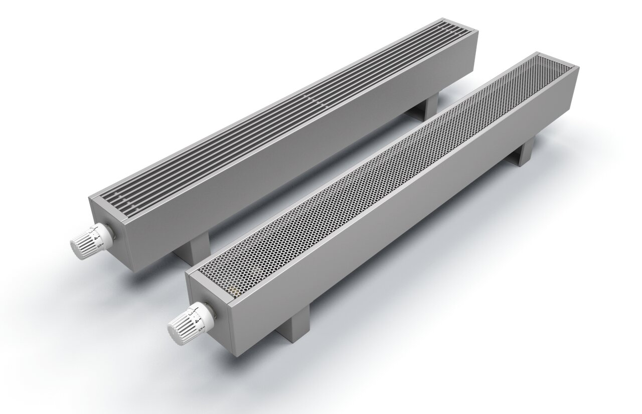 Конвекторы представляют собой ТЭН, который помещен внутрь металлического корпуса. Обогрев помещения осуществляется за счет циркуляции воздуха: проходя сквозь нижние решетки через нагревательный элемент, уже теплым он выходит через верхние решетки-жалюзи. Возможно как настенное, так и напольное размещение.