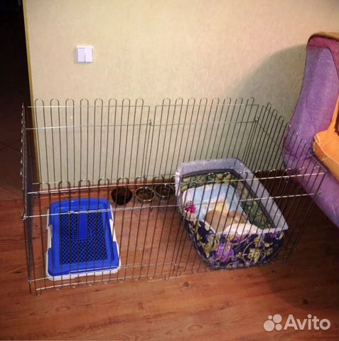 Если габариты квартиры позволяют, лучше приобрести вольер большего размера для размещения подстилки, мисок и, при необходимости, туалета внутри конструкции