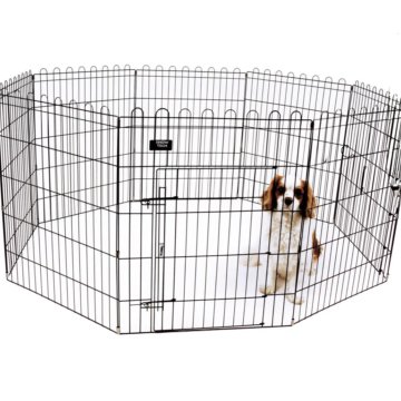 Я рекомендую превосходную складную металлическую клетку для собак MidWest Life Stages Heavy-Duty — это прочная, практичная и вместительная клетка, в которой у вашего питомца будет достаточно места, чтобы двигаться, играть и отдыхать. Прежде чем уйти, положите в ящик несколько его любимых игрушек, чтобы ему было с чем играть вместе с миской с водой.