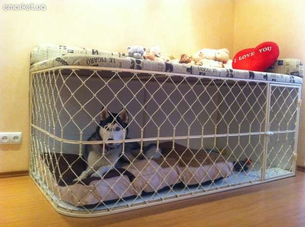 Чтобы обеспечить собаке максимальный комфорт, лучше ставить её в угол или к стене. - Чтобы питомец чувствовал защищённость, можно на крышу и на две из четырёх сторон клетки накинуть плотную накидку. Причём, оставшиеся две стороны, должны быть полностью открыты и создавать отличный обзор.