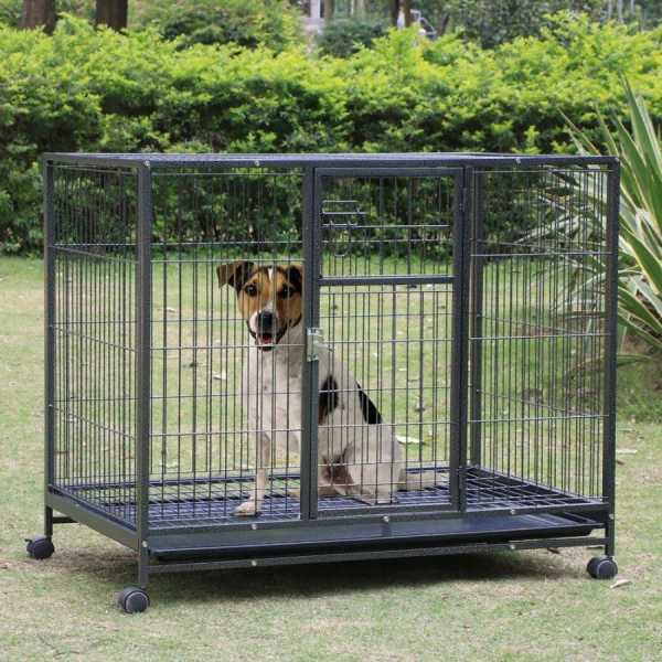 Для взрослой крупной особи подойдет расстояние в 10 сантиметров между прутьями, для маленьких — меньше. Главное, чтобы голова собаки не могла застрять в решетке.