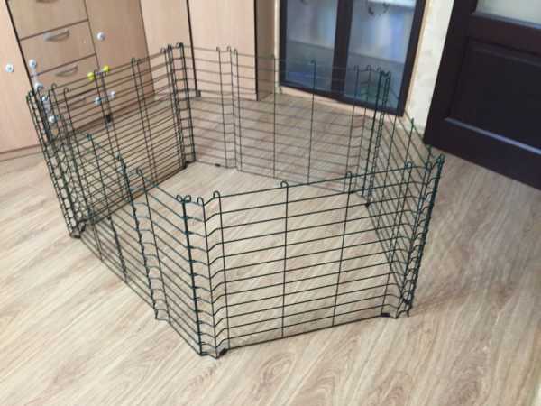 Самые популярные квартирные вольеры создаются из металлической сетки. Они могут иметь разную форму, крышу, одну или несколько дверок – многое зависит от того, для каких целей будет использоваться сооружение.