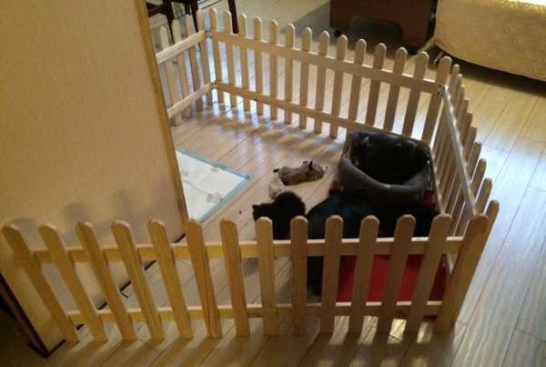 Иногда владельцы собак сталкиваются с такими ситуациями, что свободное передвижение животного в стенах квартиры нужно ограничить. Для этого лучше всего не закрывать песика в комнате и ни в коем случае не сажать его на поводок. Сделайте квартирный вольер для любимой собаки! Конечно, его можно и приобрести, но дешевле его будет создать своими руками.