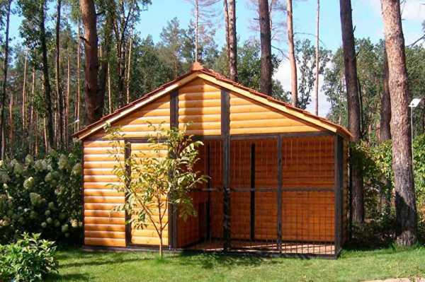 Вольер можно построить своими руками и из дерева. Для некоторых этот материал привычнее, чем металл, а потому работа будет легче. Размеры клетки определяют, как и в случае с металлическим помещением. Схему разрабатывают на основе данных о габаритах собаки, ее возрасте, целей использования сооружения.
