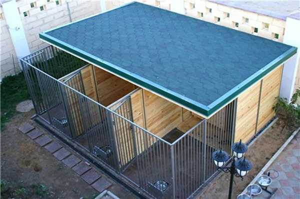 Последняя выполняется из битумной черепицы, хорошо спасающей от осадков, являющейся износостойкой и шумоизолирующей. Скат крыши проектируется в сторону водоотвода, во избежание образования луж вокруг вольера.