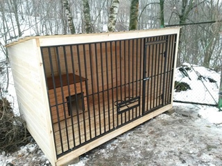 Деревянные вольеры смотрятся хорошо, но их практичность также находится под сомнением. Собаки любят точить свои зубы о поверхность деревянных планок.