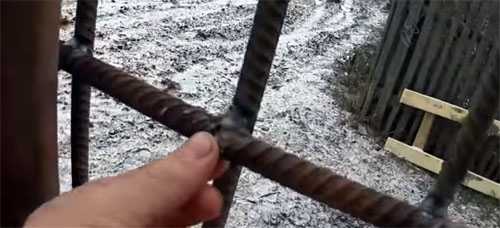 Что бы прикрепить сетку, к верхним концам опорных столбов по периметру приварите арматуру или металлические прутья, диаметром не менее 0.8 см.