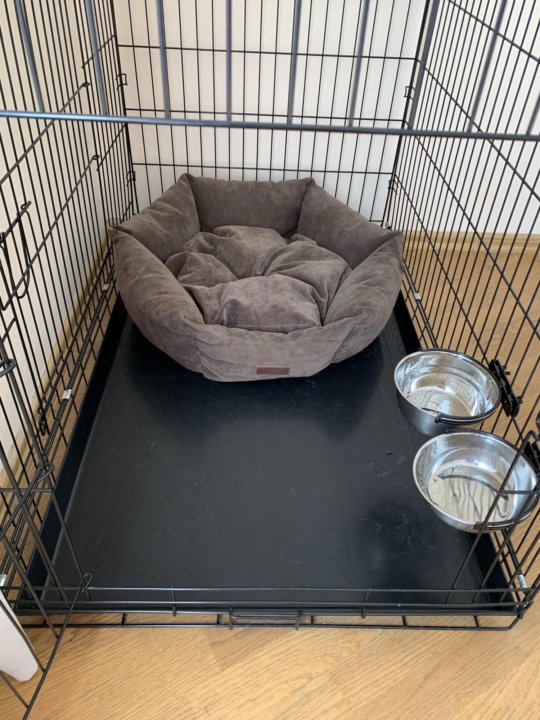 Квартирный вольер – младший брат обычного уличного и в нем должны быть созданы все необходимые условия: мягкая подстилка, миски, игрушки, отхожее место (пеленка, лоток) и место для отдыха
